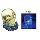 This amazing crystal skull glows from within! Nicely detailed, high quality, heavy skull glows blue with an internal LED light. Cool when the room is lit, even cooler in the dark!!!