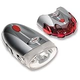 The Bell® Dark Flyer light set gets you equipped for riding in low-light conditions with a headlight and tail light. The head light has a bright halogen bulb with twin-action LEDs, and the tail light has 8 large, super-red LEDs with 6 flashing modes.